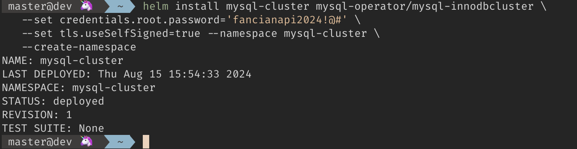 helm install mysql-cluster mysql-operator/mysql-innodbcluster \\