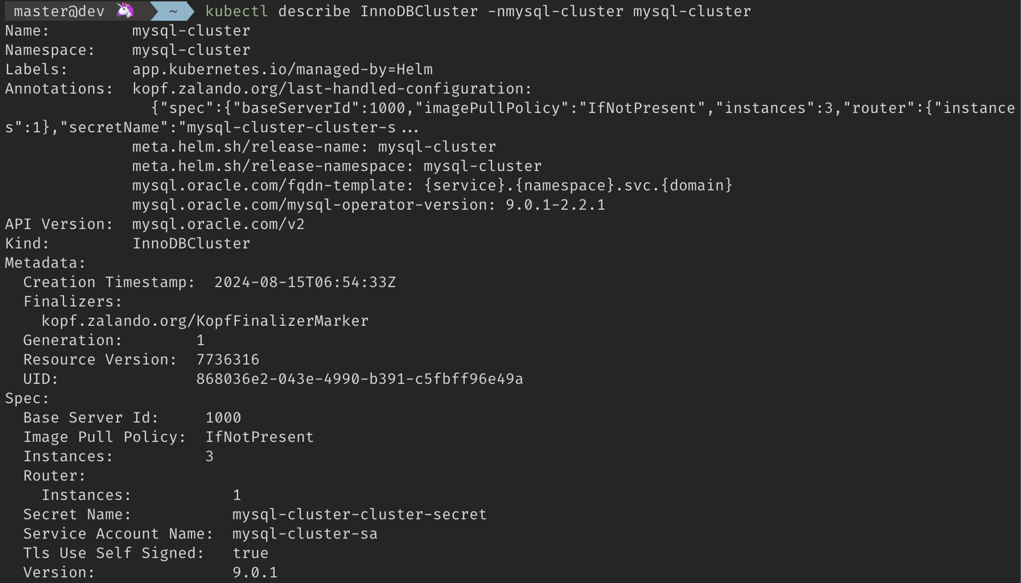 kubectl describe InnoDBCluster -nmysql-cluster mysql-cluster